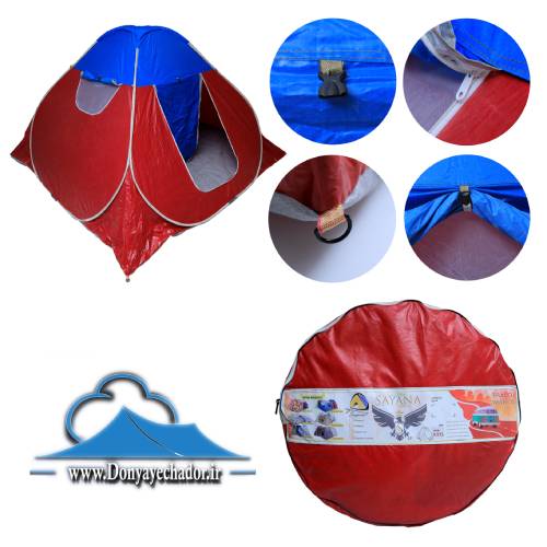 این محصول درب نسبتا بزرگی هم دارد و دارای سه پنجره با پشه بند ثابت نیز می باشد. ابعاد کف این چادر هم به 220*220 می رسد.